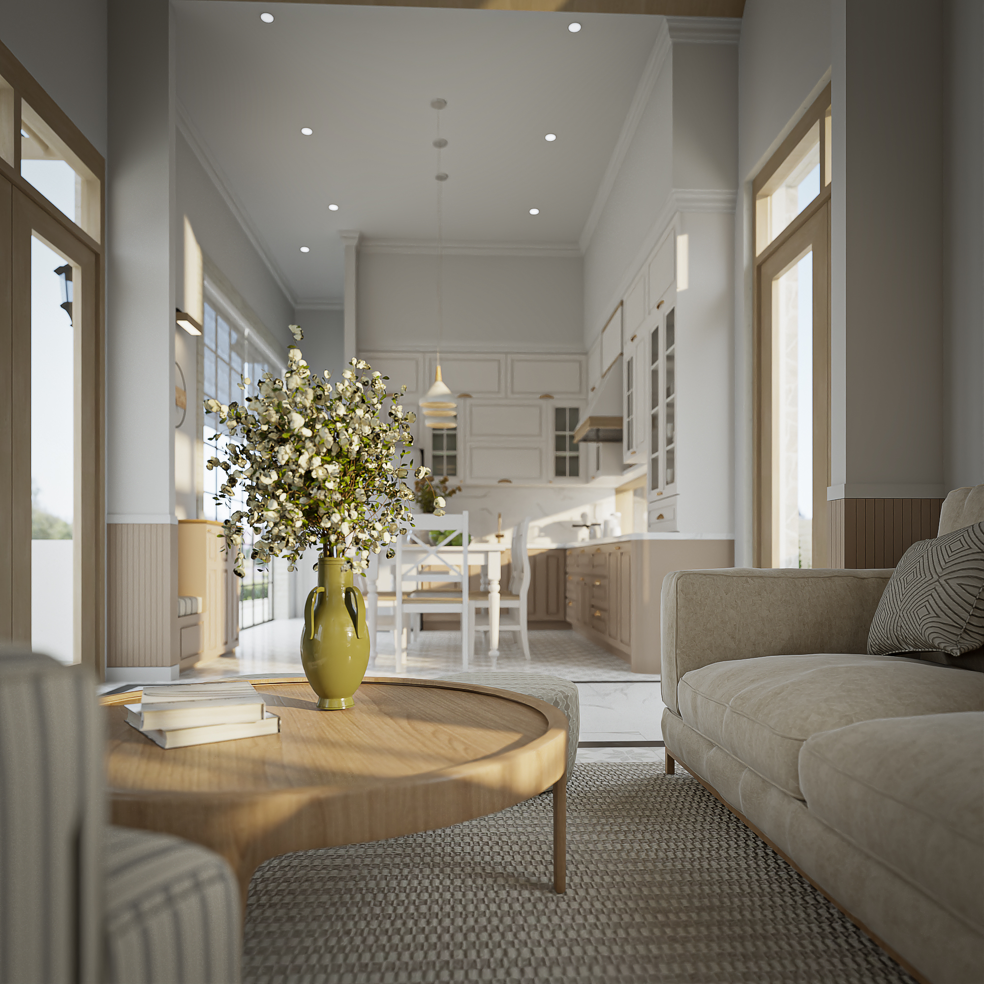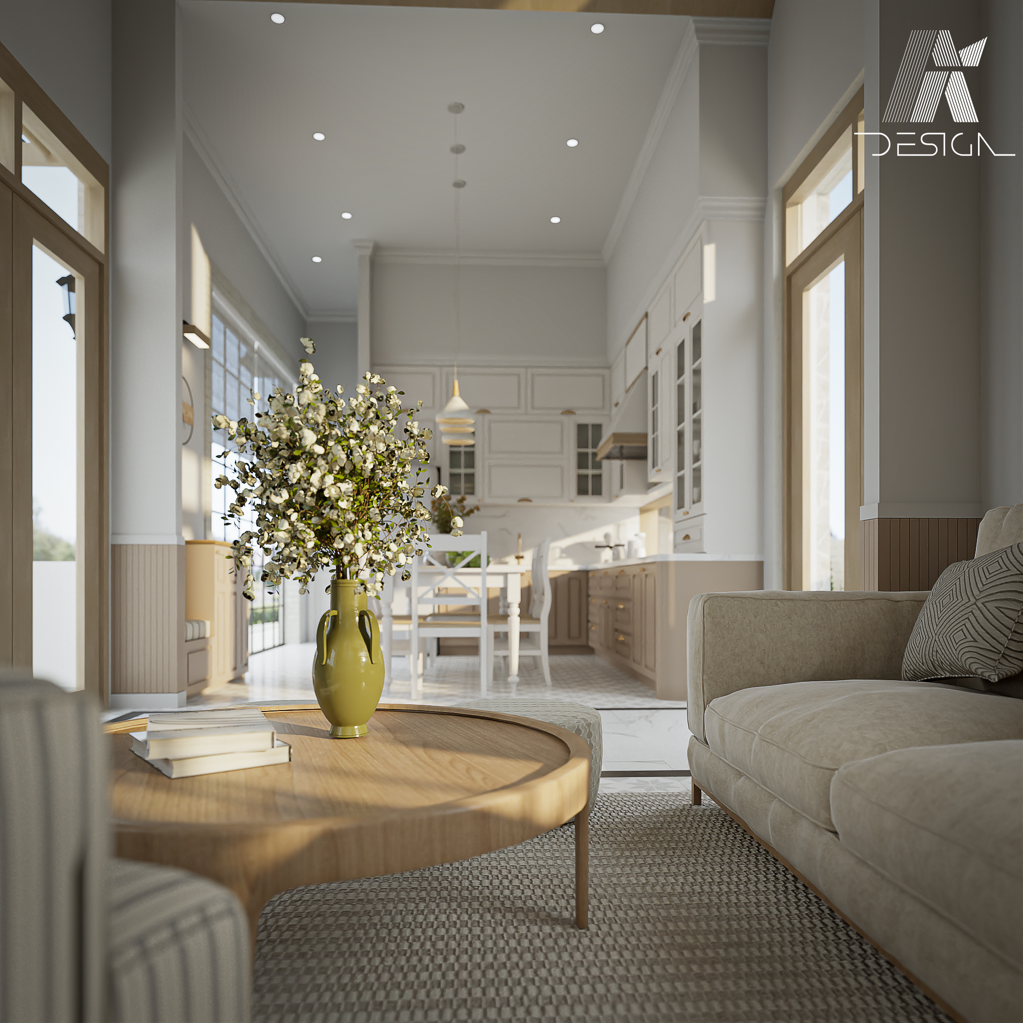 Mô tả dự án: Một dự án thuần phong cách Farm house - theo trường phái Pháp. Cđt là một người yêu mến văn hóa, lối sống … của Pháp nên cô muốn tạo ra một nơi nghỉ dưỡng cho gia đình vào những dịp cuối tuần tại Cần Giờ. Đây là một cảm hứng để AI Design bắt tay vào nghiên cứu từ phong cách, cấu trúc không gian thuộc kiểu Pháp, và cả chất liệu, ánh sáng .... tất cả xây dựng nên một không gian thuần Pháp tại Cần Giờ.